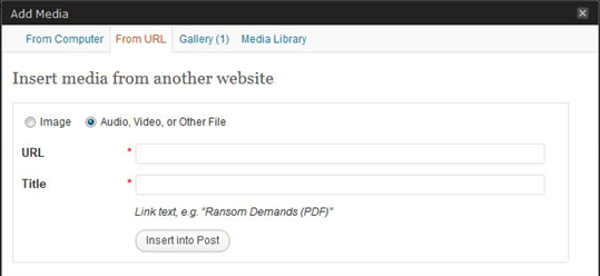 And click Insert into Post button, the result of this will be a link leading to the video URL you have just entered.