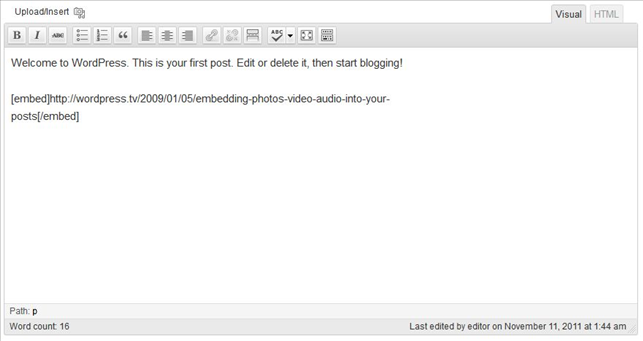 To do it, just copy and paste in the URL of the video that you want to embed and wrap that URL in the [embed] shortcode