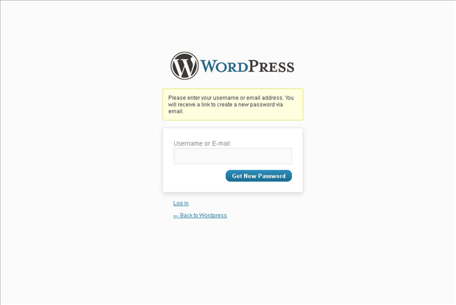 If you have forgotten your password click on the text that reads "Lost your password?" and you will be taken to this screen: