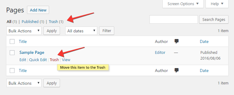 Caution: Once a page has been moved to Trash, you can recover it (see Next link below). |